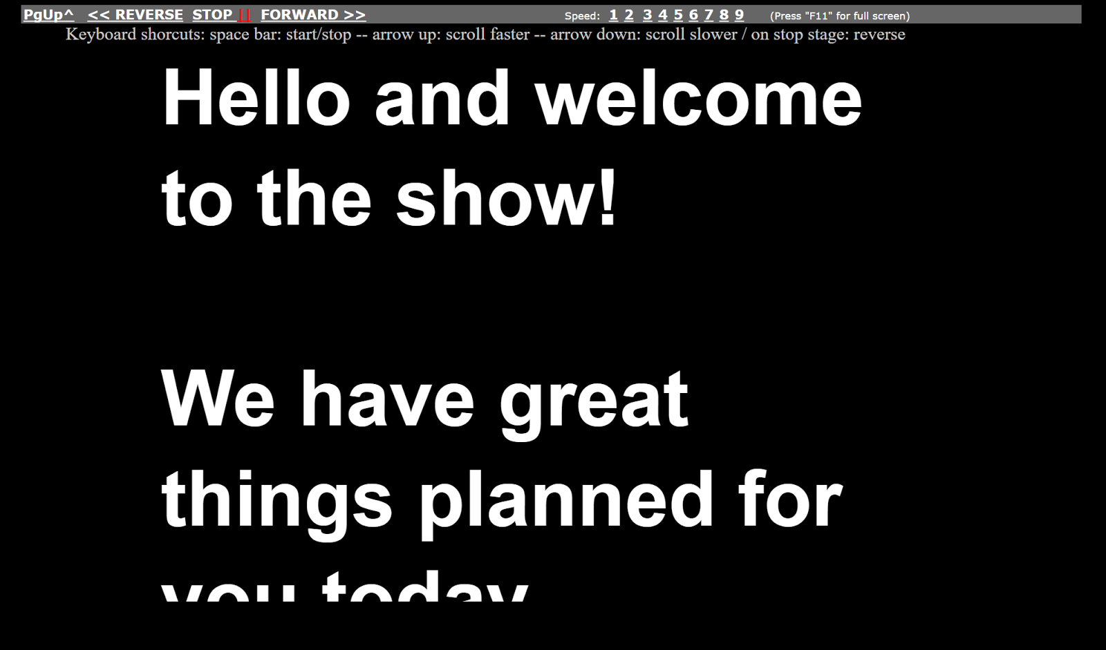 To use CuePrompter just go to the site then start entering your script into the “quick start” text box. After you have entered your script you can select the size of the prompter display, the size of the text, and the display color scheme. Click “start prompter” when you’re ready to start using your script in the CuePrompter display. You can adjust the speed at which your script scrolls down the screen. If you need to stop and rewind, you can do that in the script display too.