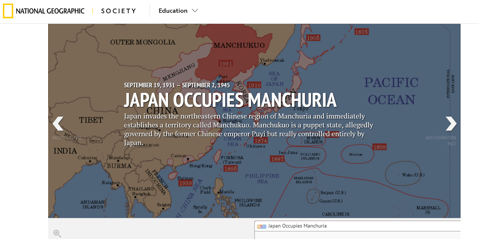 As any good student of history can tell you, the Pacific theater of World War II was just as complicated as the European theater. National Geographic has a multimedia timeline that can help students understand the sequence and significance of events in the Pacific theater.