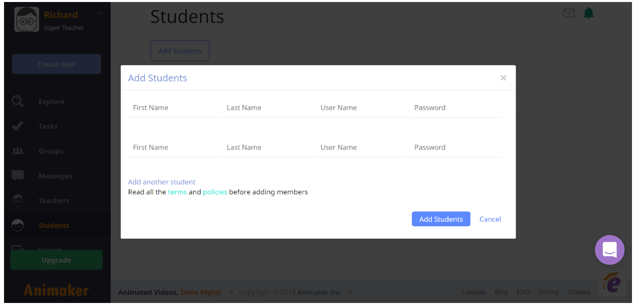 As I mentioned in the opening, Animaker Edify gives teachers the power to oversee their students’ accounts. When after you register and confirm your Animaker Edify account you can create accounts for your students. The free version of Animaker Edify allows you to add up to twenty-five students to your account. Your students do not need to have email addresses in order to use Animaker Edify. In fact, there isn’t even an option for students to add their email addresses. Students get their usernames and their passwords directly from you. If they need their passwords reset, you can do that for them from within your Animaker Edify account. Watch this short tutorial to see easy it is to add students to your classroom.