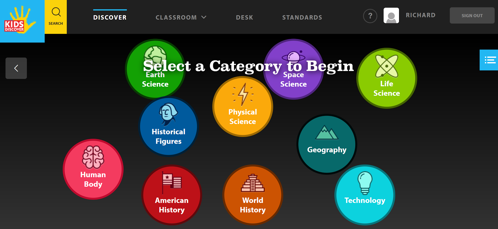 To help students to see topics and problems as more than just a “history lesson” or a “math problem” Kids Discover Online offers a feature called Discover Maps. Discover maps can help students see the connections between social studies topics, math topics, and science topics. It is one of the tools that exists today that I wish had existed when my students undertook the Mars project years ago. Discover Maps are essentially interactive webs of discovery. Students can select any topic in a web and instantly see a new web of more related topics. The webs display related topics from the fields of science, social studies, and math. Each time a student clicks on a topic a new web is generated. Of course, each web also contains links to multimedia articles for students to read.