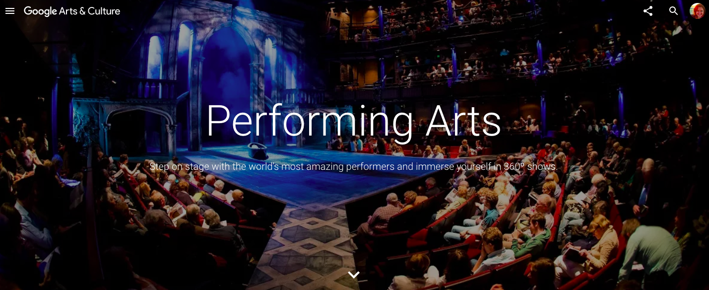 Performing Arts, part of the Google Cultural Institute, is a website that allows you to experience music, opera, theater, and dance in in 360 degree images and videos. Imagine being able to listen to the Philadelphia Orchestra perform at Carnegie Hall or step on the stage at the Royal Shakespeare Company and listen to an actor deliver a powerful monologue. This incredible website includes behind the scenes tours, videos, stories of dozens of performances.