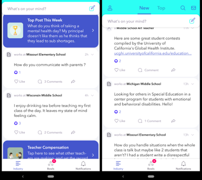 Here’s a good example of discussions that can happen in Fishbowl. In the Fishbowl teachers community there is currently a discussion about taking “mental health days.” That’s a question that you might not want to discuss on Twitter or LinkedIn because everyone can see your real name and where you teach. On Fishbowl you can post in that discussion and have your screen name appear as simply “teacher in Maine.”