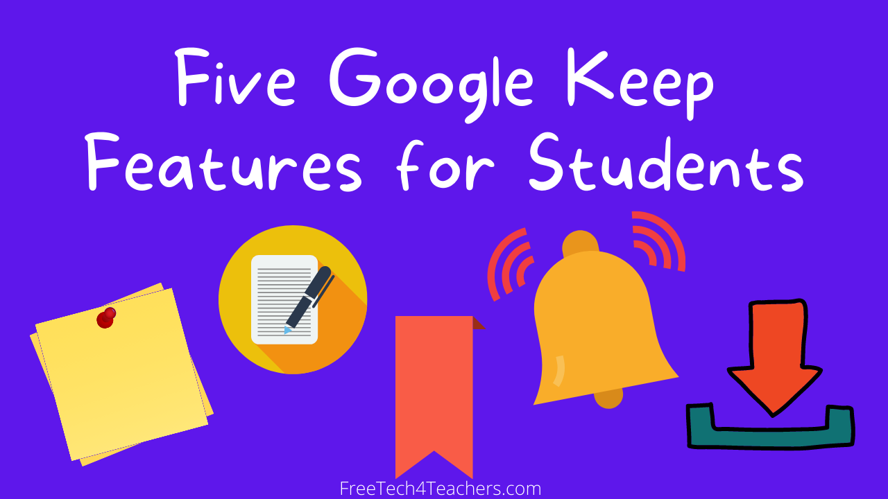 Google Keep is a great tool for middle school and high school students to use to create assignment reminders, bookmark important research findings, organize information, save images, and re-use notes in their research documents. All of those features and more are demonstrated in my new video, Five Google Keep Features for Students.