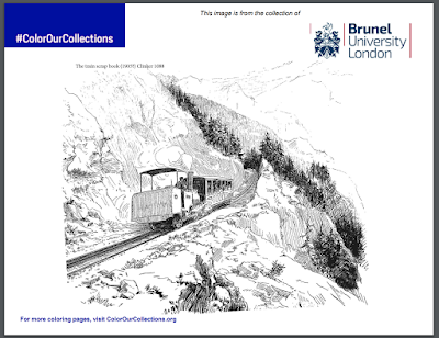 Color Our Collections offers coloring pages covering a wide range of topics and themes. The Getty contributions feature animals, the contribution from the Library of Virginia covers the topic of Women’s Suffrage, and Brunel University’s collection features trains. Contributions from some museums and libraries cover topics in medicine. Because of the wide range of topics in the collection I’d recommend either curating a collection from the collection to send home or advising parents to pick and print from the website rather than sending students directly to the website.