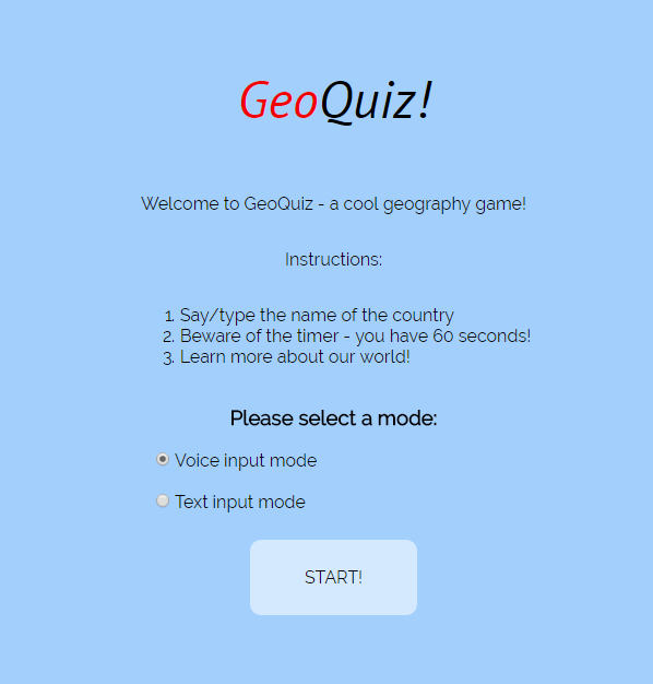 In my testing of GeoQuiz I had to be sure to enunciate when I said the name of a country. GeoQuiz did a good job of recognizing what I was trying to say, most of the time. Be sure to use the Chrome web browser and enable microphone access in order to play the game.
