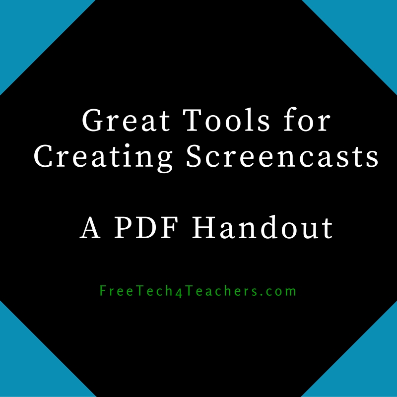 Over the last few weeks I have shared my favorite tools for creating screencast videos on Chromebooks, on Windows and Mac computers, on iPads, and on Android tablets. Many people who read this blog work in BYOD environments or otherwise need tools for creating screencasts on a variety of devices. Therefore, this morning I put together a PDF featuring my favorite screencasting tools and methods. You can view the document as embedded below or you can grab a Google Docs copy here.
