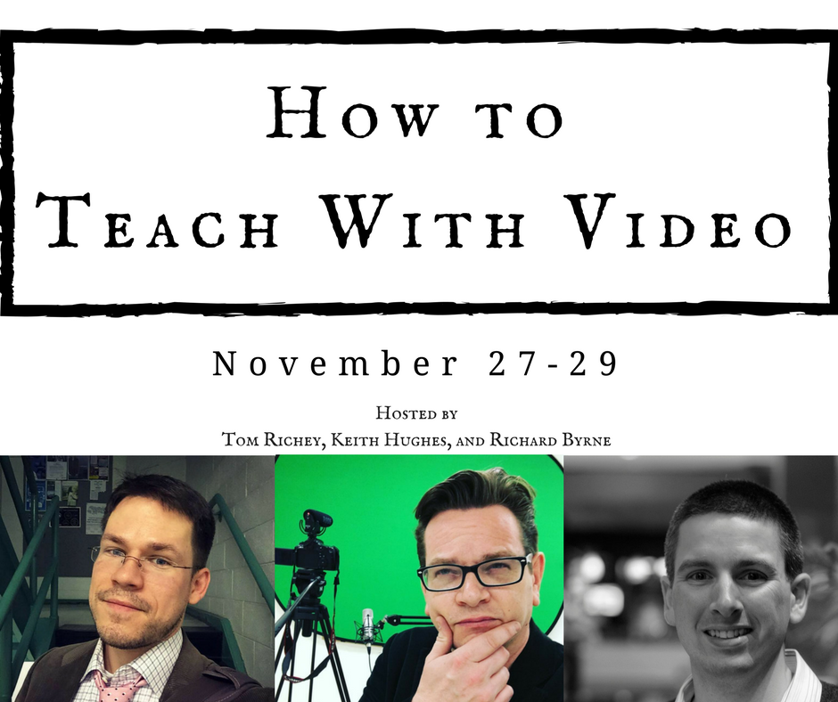 In case you missed my excited post on Twitter last week, last week two of my favorite YouTube video producers, Tom Richey and Keith Hughes, agreed to help me host a live three night event all about teaching with video. Between us we have more than 250,000 YouTube followers. All three of us share a common background as social studies teachers and lovers of great videos. So on November 27th, 28th, and 29th we’re hosting How to Teach With Video.