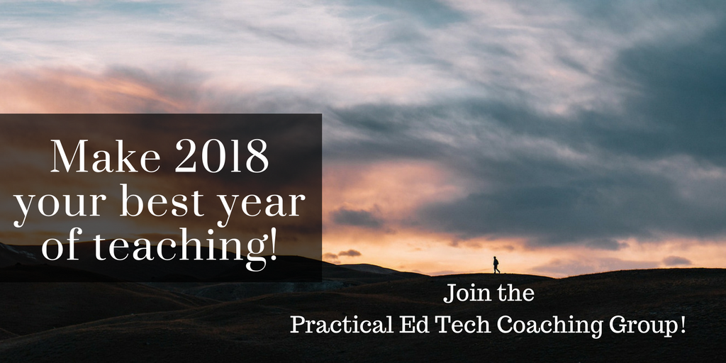 Throughout the year I host at least two professional development webinars every month. For 2018 I am making it easy for you to register for all of them in one fell swoop. Enroll in the the 2018 Practical Ed Tech Coaching Group and you will be registered for 24 webinars plus an additional live Q&A session every month. That Q&A is only available to group members. Learn more about the live Q&A sessions in this video.