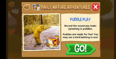To use the Nature Cat’s Great Outdoors app students simply open it, press play, and select a “daily nature adventure.” There are adventures for sunny days, rainy days, and snowy days. An example of a rainy day adventure is recording the sounds of rain drops and the sounds of splashing in puddles. The app has more than 100 adventure suggestions built into it. Students earn digital badges for completing adventures.