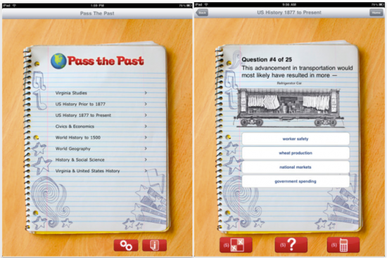 Pass the Past is a free iPad app designed to help students review U.S. and World History. The app was designed for students preparing for Virginia’s Standards of Learning exams, but it can be used by any student reviewing for a test on U.S. or World history. Pass the Past offers a large selection of multiple choice quizzes. Each quiz contains 25 questions that include visual prompts. There is a hint button that students can tap if they get stuck on a question. After completing each quiz, students can see their scores and see the correct answers to each question.