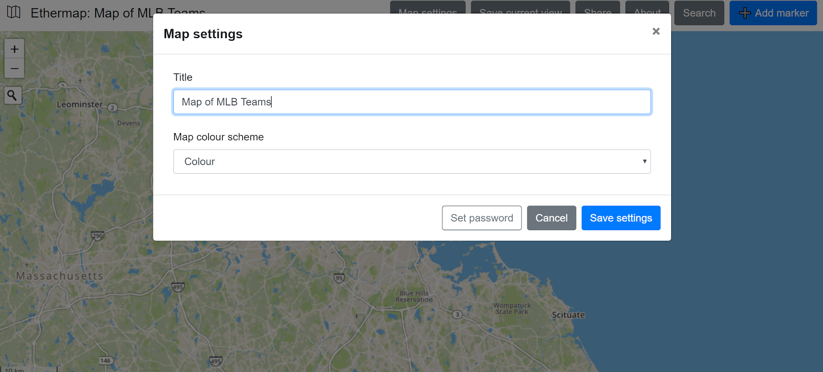 Google’s My Maps tool is great for students to use to collaborate on the creation of custom maps. The problem with it is that students must have Google accounts in order to use it. Ethermap solves that problem by not requiring users to have any kind of email account.
