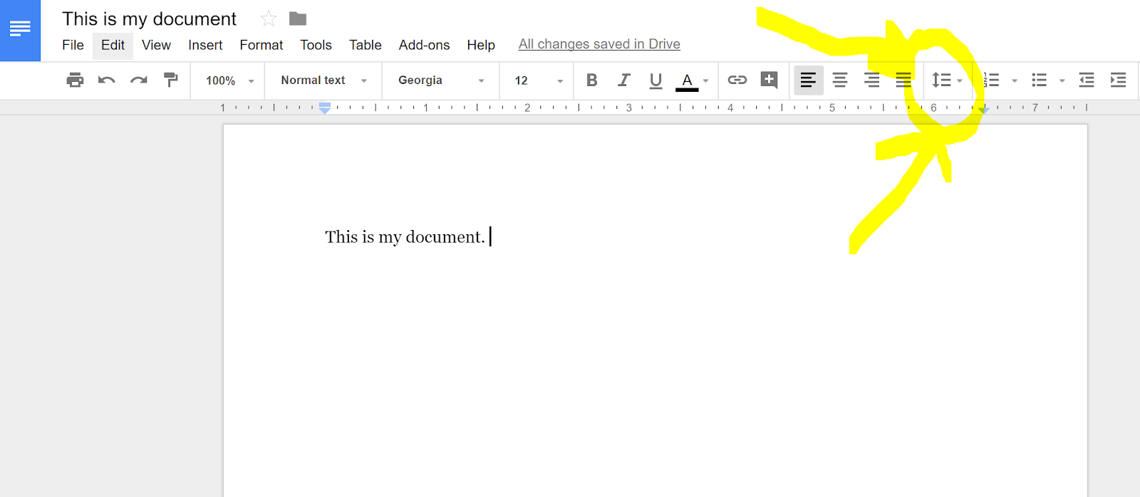 The default line spacing in Google Docs is 1.15. You can change that to anything you like, if you know where the line spacing settings are found. You can find the settings in the “format” menu. You can also find it in the toolbar. See the screenshot below for direction on finding the line spacing settings in the toolbar.