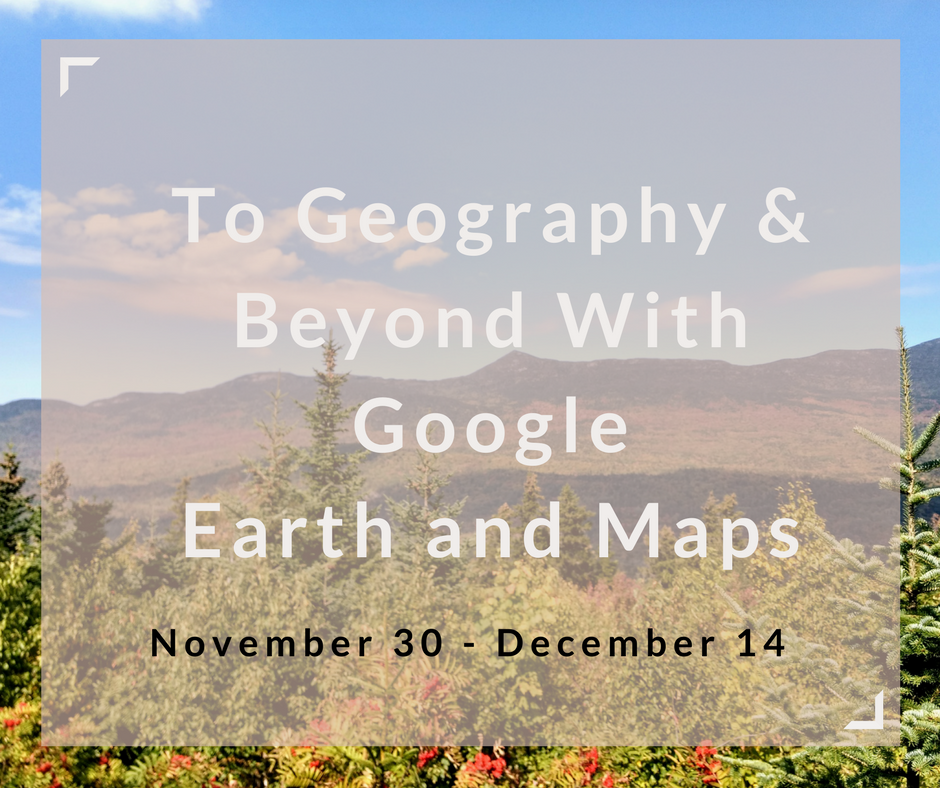 I loved Google Earth since the first time I used it. And I have enjoyed teaching it to many teachers over the last decade. That’s why I’m excited to offer To Geography and Beyond With Google Maps & Earth. This course will meet on three Thursday afternoons starting on November 30th.