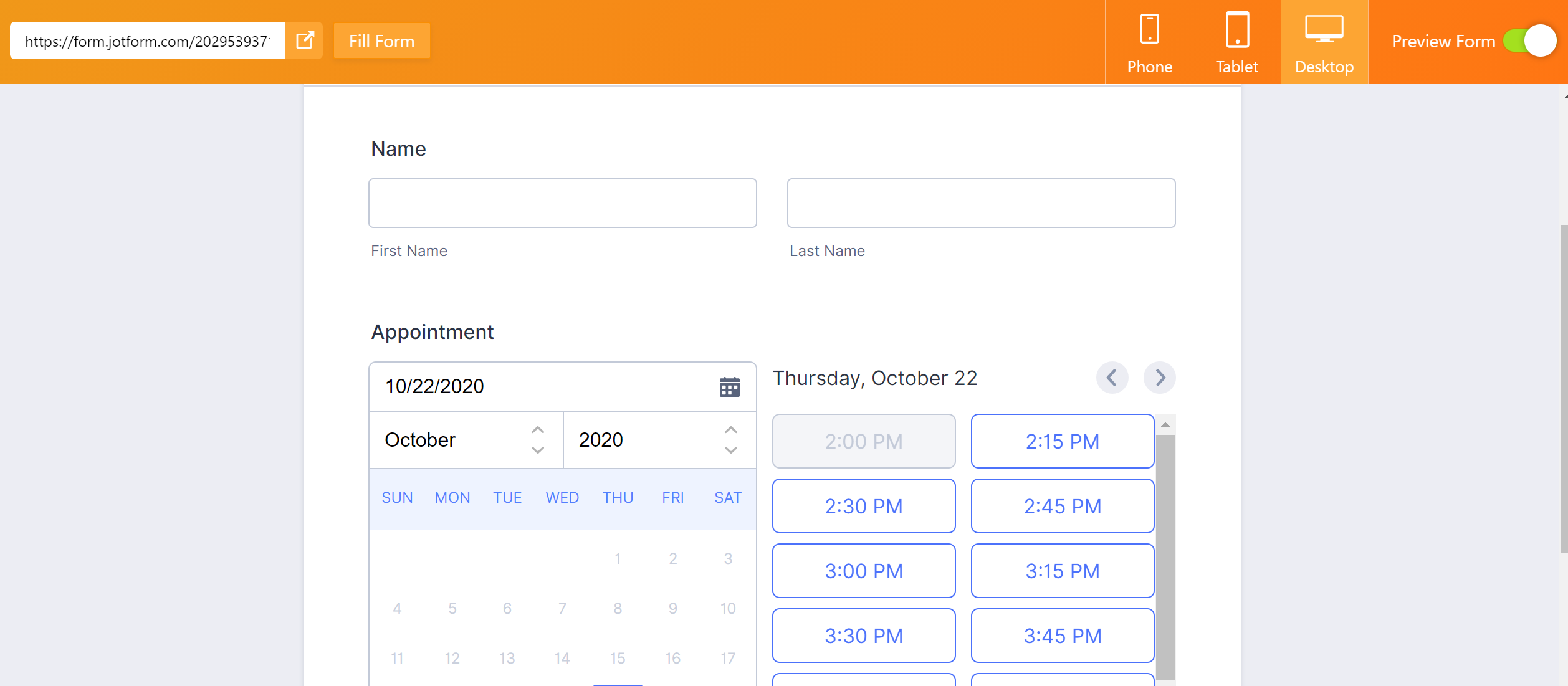 JotForm is a good alternative to Google Forms and Microsoft Forms. In JotForm there is an option to add appointment registration questions. You can set appointment slots of 15, 30, 45, or 60 minutes. Once an appointment has been claimed it can’t be claimed by anyone else visiting your form.