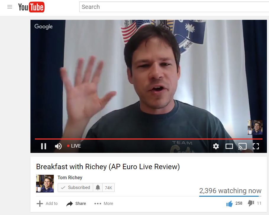 This morning I opened YouTube to see a notification from my friend Tom Richey that he was going live with a review session for AP European History students. When I joined in there were nearly 2,400 viewers and at one point there were over 2,500 viewers. Tom was talking to students in his own classroom and broadcasting the review for anyone who wanted to watch. A bunch of classrooms around the U.S. were watching.