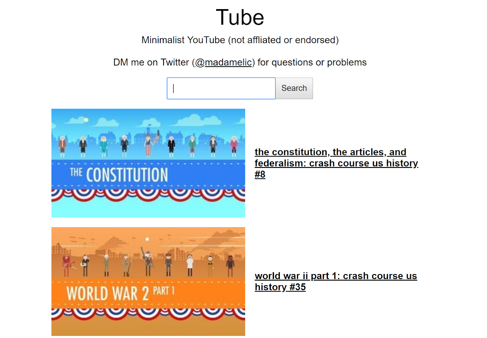 Tube is a new tool providing a minimalist view of YouTube. When you go to Tube all you will see is “Tube,” a disclaimer, a link to the developer’s Twitter account, and a search box. Enter your search terms into the Tube search box and a list of results appears below it without showing any advertising or other sidebar content. When you click one of the videos in the search results it is displayed nearly full-screen on a plain white background.