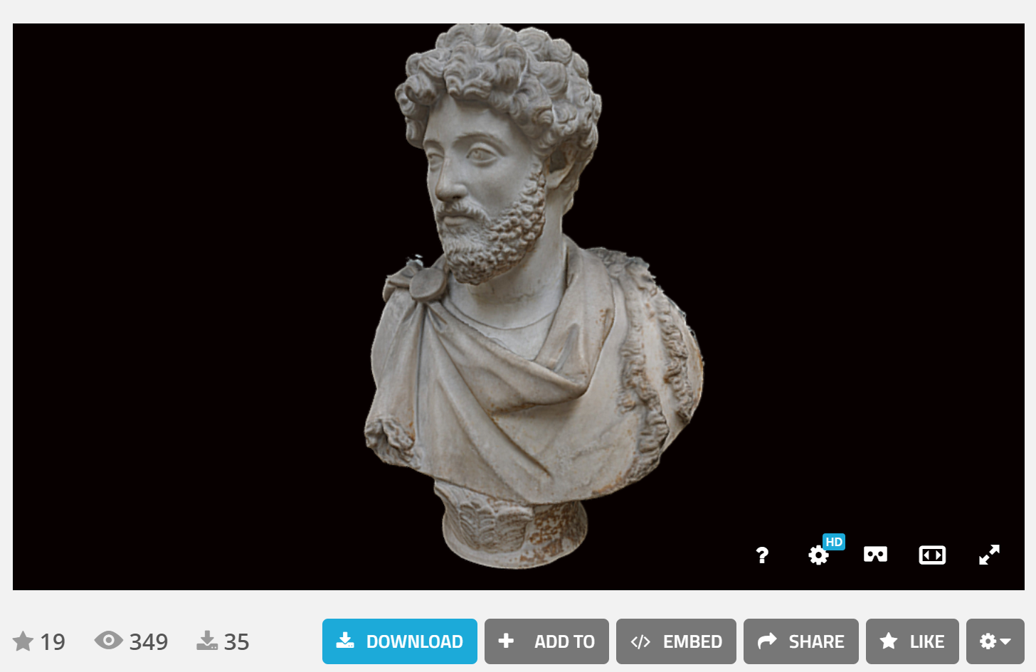 The British Museum collection on Sketchfab contains 252 3D models of artifacts in The British Museum’s collections. You can view these models in 3D in your web browser or in a virtual reality viewer. (To view the models in your browser your browser needs to support WebGL, you can test your browser here). If you have a 3D printer, you can print the models yourself by downloading the corresponding files from Sketchfab. You can also embed the models into a webpage as I have done below.