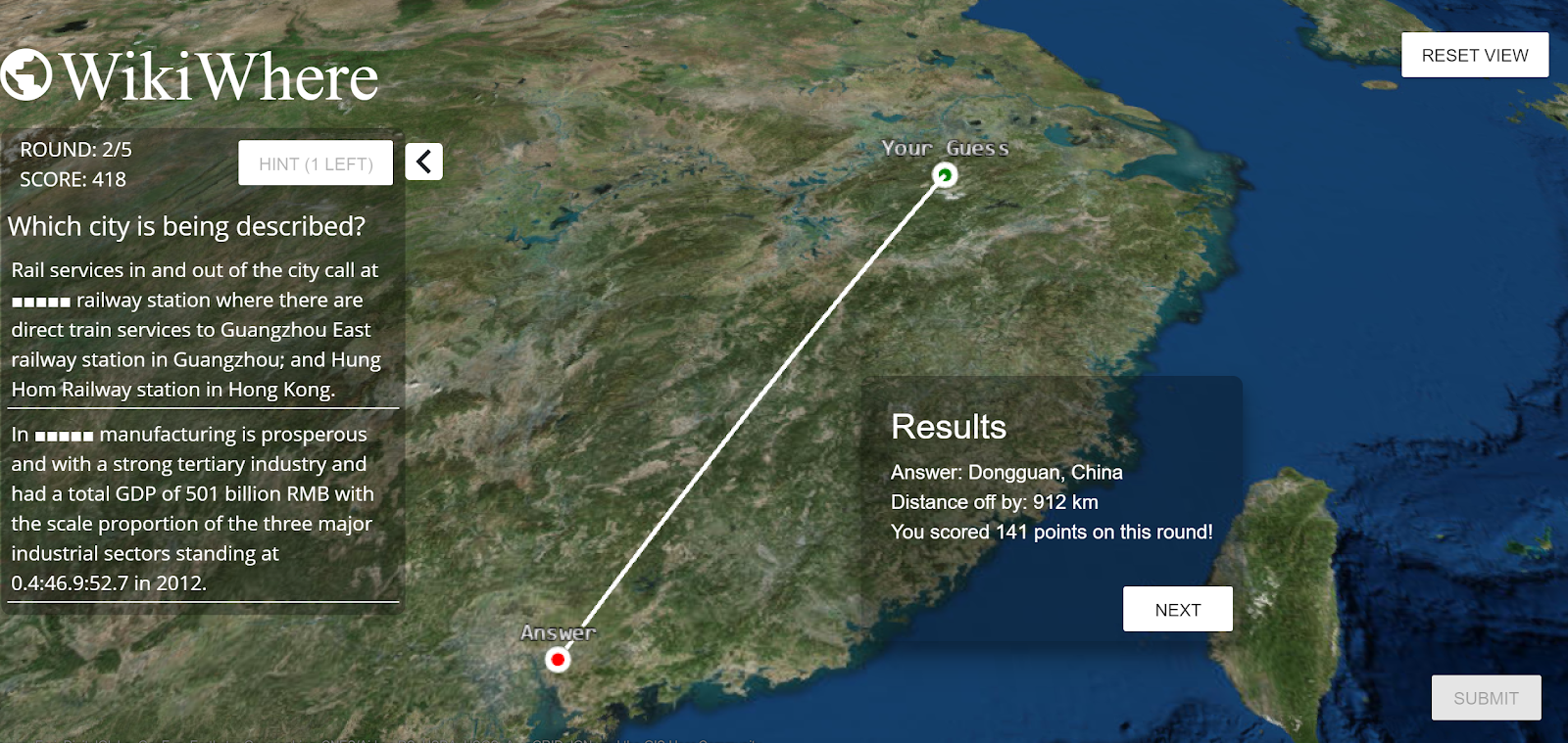 WikiWhere could be a fun and challenging way for students to test their knowledge of world geography. One way to extend the use of the game would be to set a rule for students that if they were off by more than 50 or 100 miles that they then have to do some light research about the city.