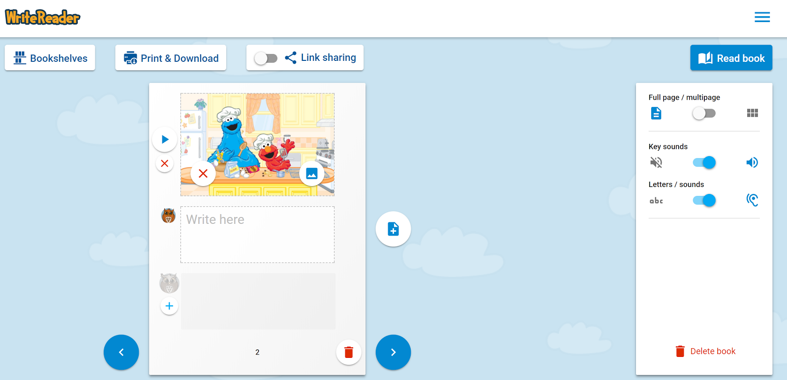 One of WriteReader’s outstanding features for teachers is the option to write corrections directly beneath a student’s original writing in the ebook before publication. The feature that students like is gallery of artwork including Sesame Street scenes to use in their stories. And parents like that their children can record their own voices in WriteReader books.